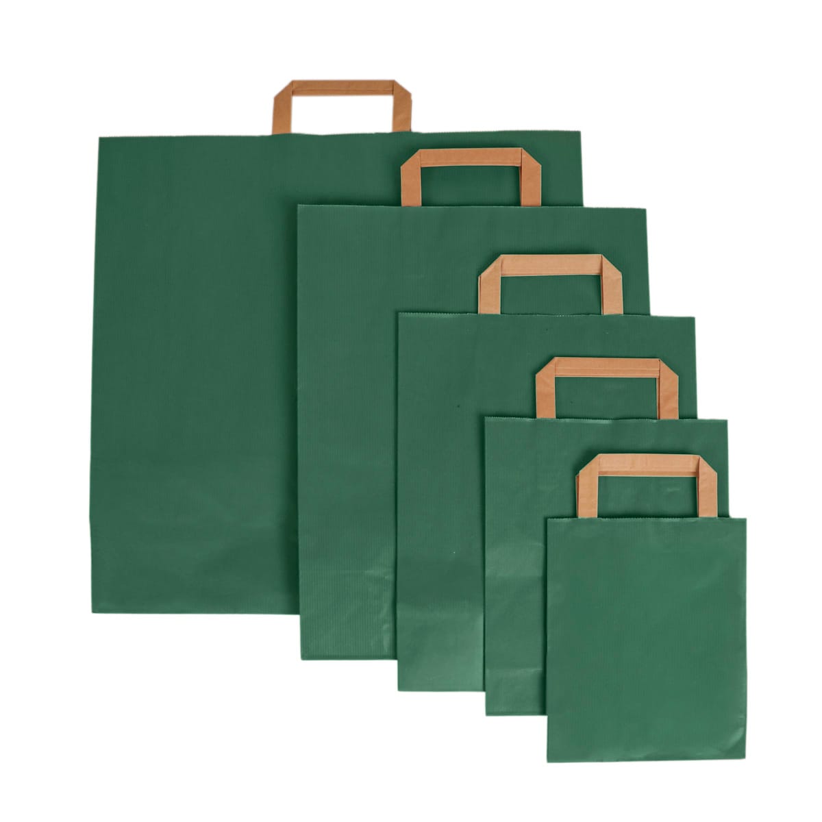 Dovanų maišelis su plokščiomis rankenėlėmis, 450x150x490 mm, PAP, 110 gsm, tamsiai žalios sp.