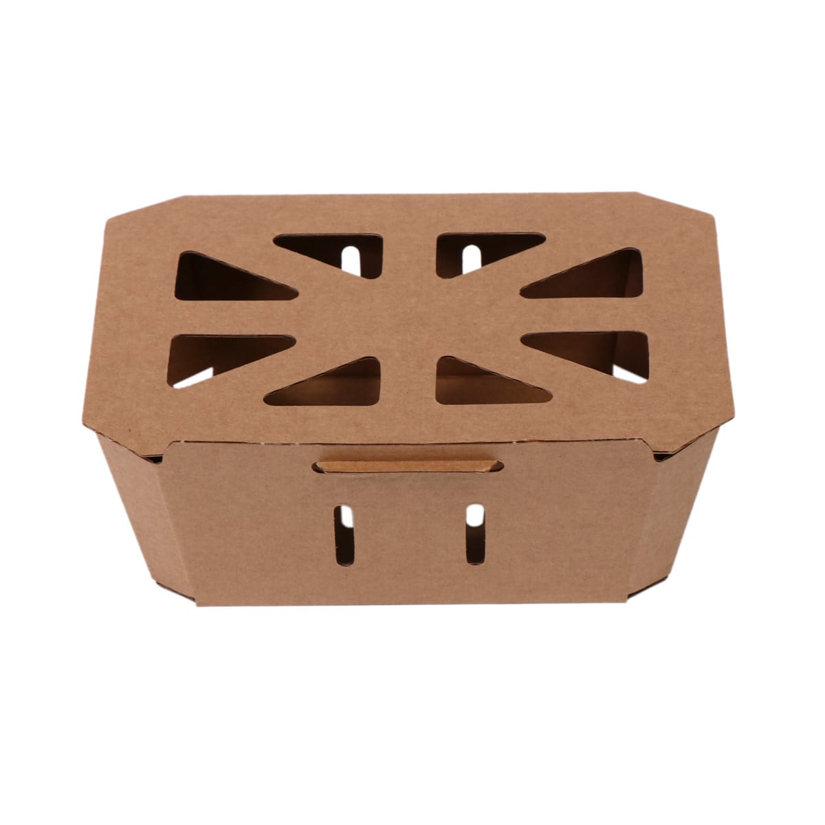 Gofruoto kartono dėžutė uogoms 139 x 97 x 60 mm su atlenkiamu dangteliu, 300 ml, kraft, rudos sp., pakuotėje 20 vnt.