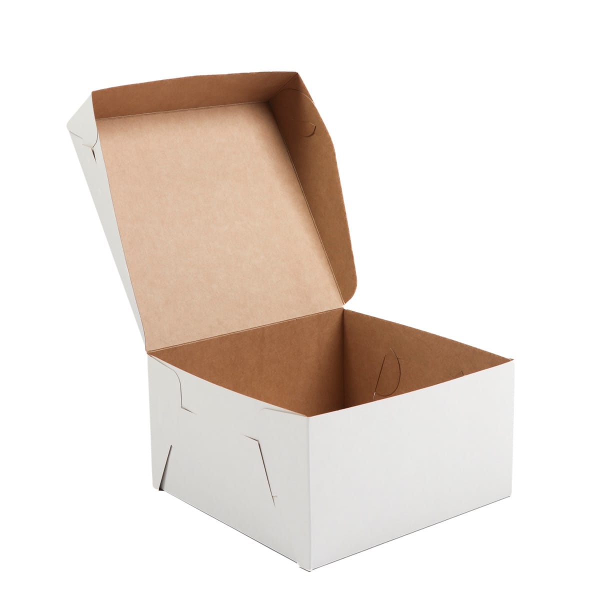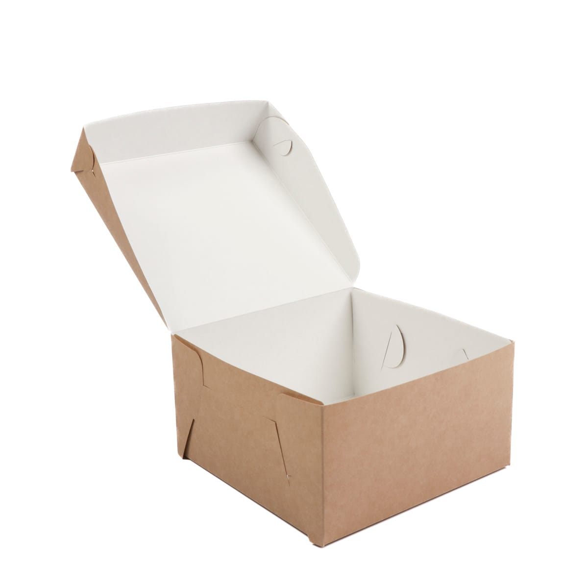 Kartoninė dėžutė konditerijos gaminiams 18x18x10cm su dangteliu, baltos/rudos sp., pakuotėje 100 vnt.