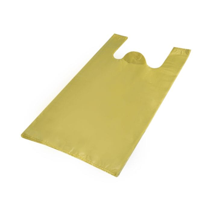 Maišeliai su rankenėlėmis 340+170x640mm, 24µm, geltonos sp., HDPE, pakuotėje 100 vnt.