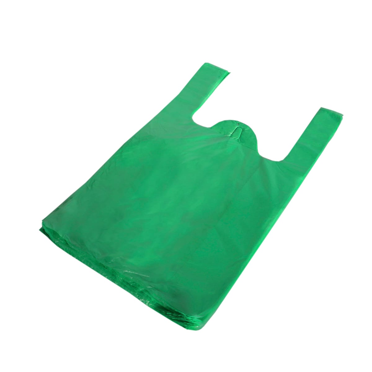 Maišeliai su rankenėlėmis 350+180×640 mm, 25 µm, žalios sp., HDPE, pakuotėje 100 vnt.