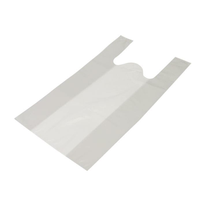 Maišeliai su rankenėlėmis 440+220×750 mm, 50 µm, baltos sp., HDPE, pakuotėje 25 vnt.