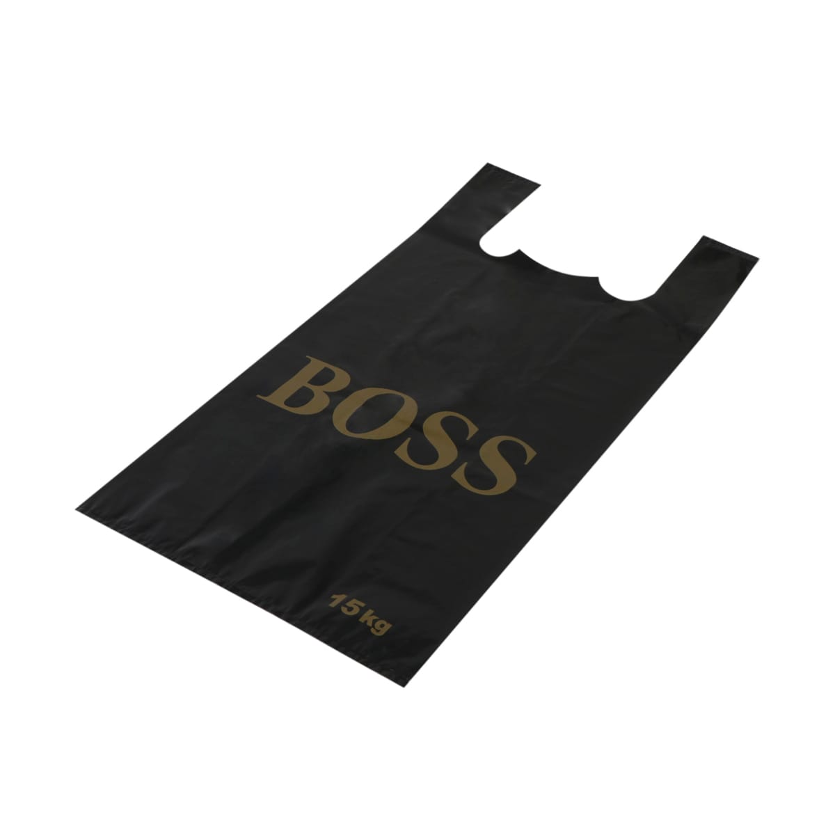 Maišeliai su rankenėlėmis 300+180×600 mm, 50 µm, juodos sp., su spauda BOSS, LDPE, pakuotėje 25 vnt.