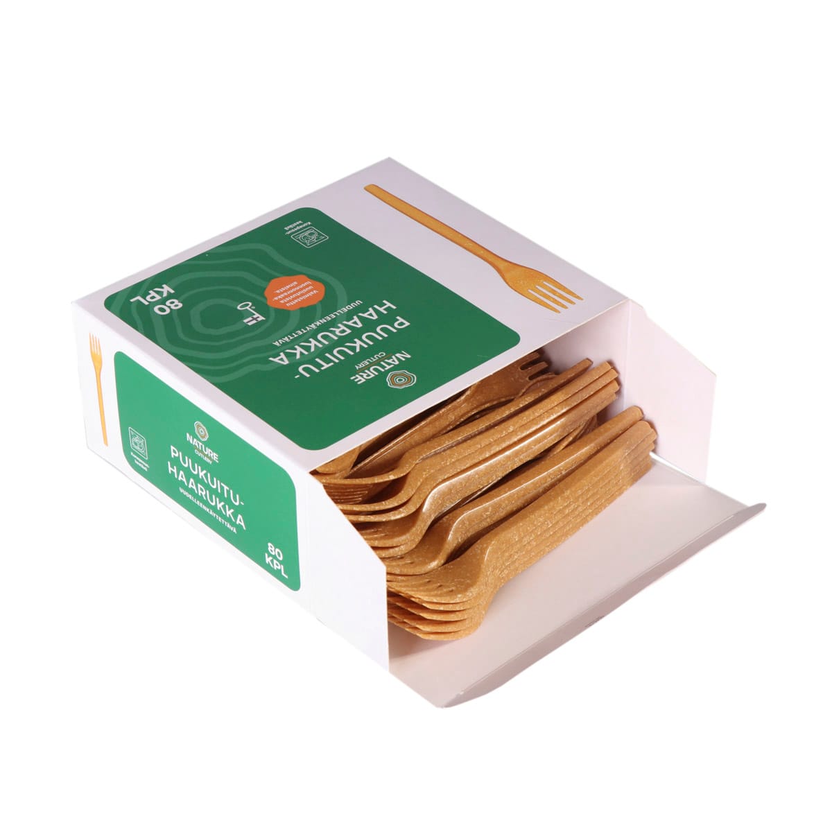 Medžio pl. šakutės 17cm, rudos sp., daugkartinio naudojimo, 80 vnt.