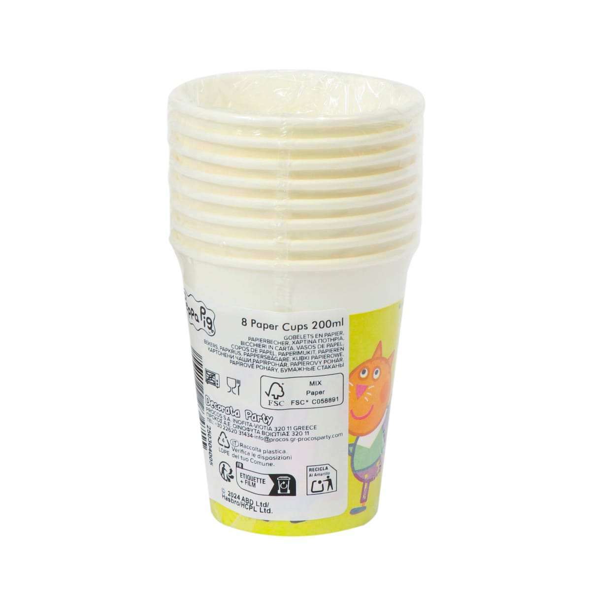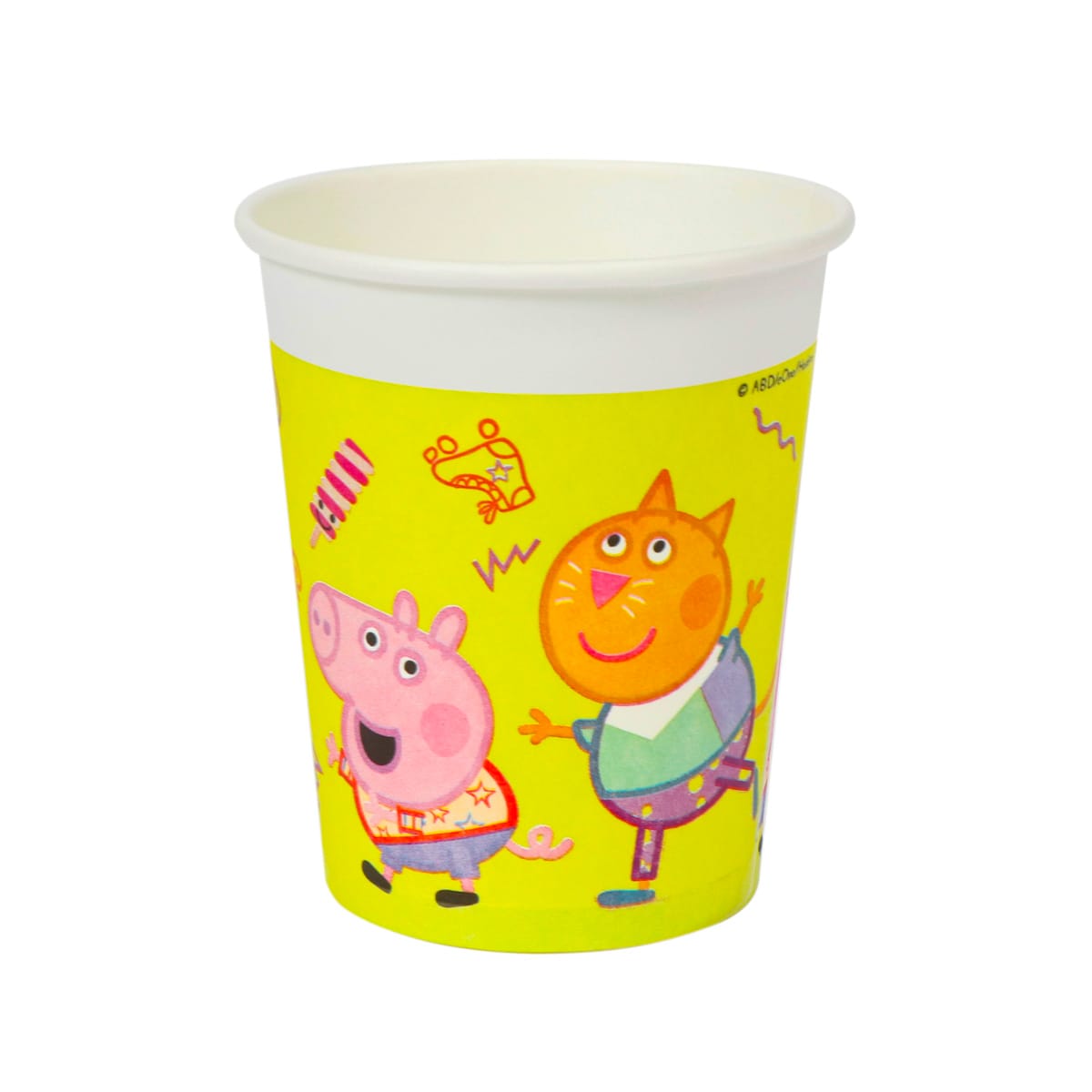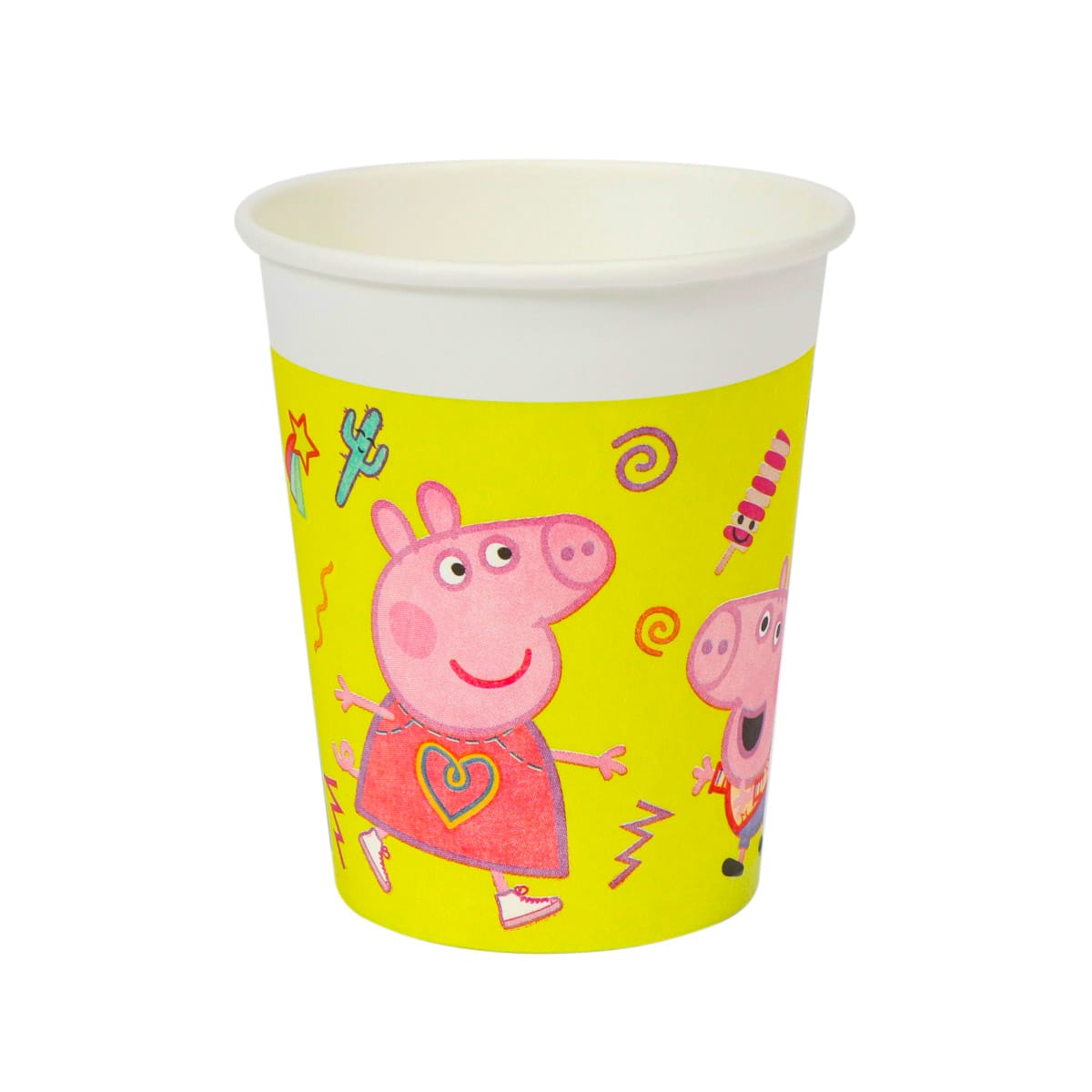 Puodeliai PAP/PE, 200ml, Ø80mm, baltos sp., PEPPA PIG, vienasluoksniai, 8 vnt.