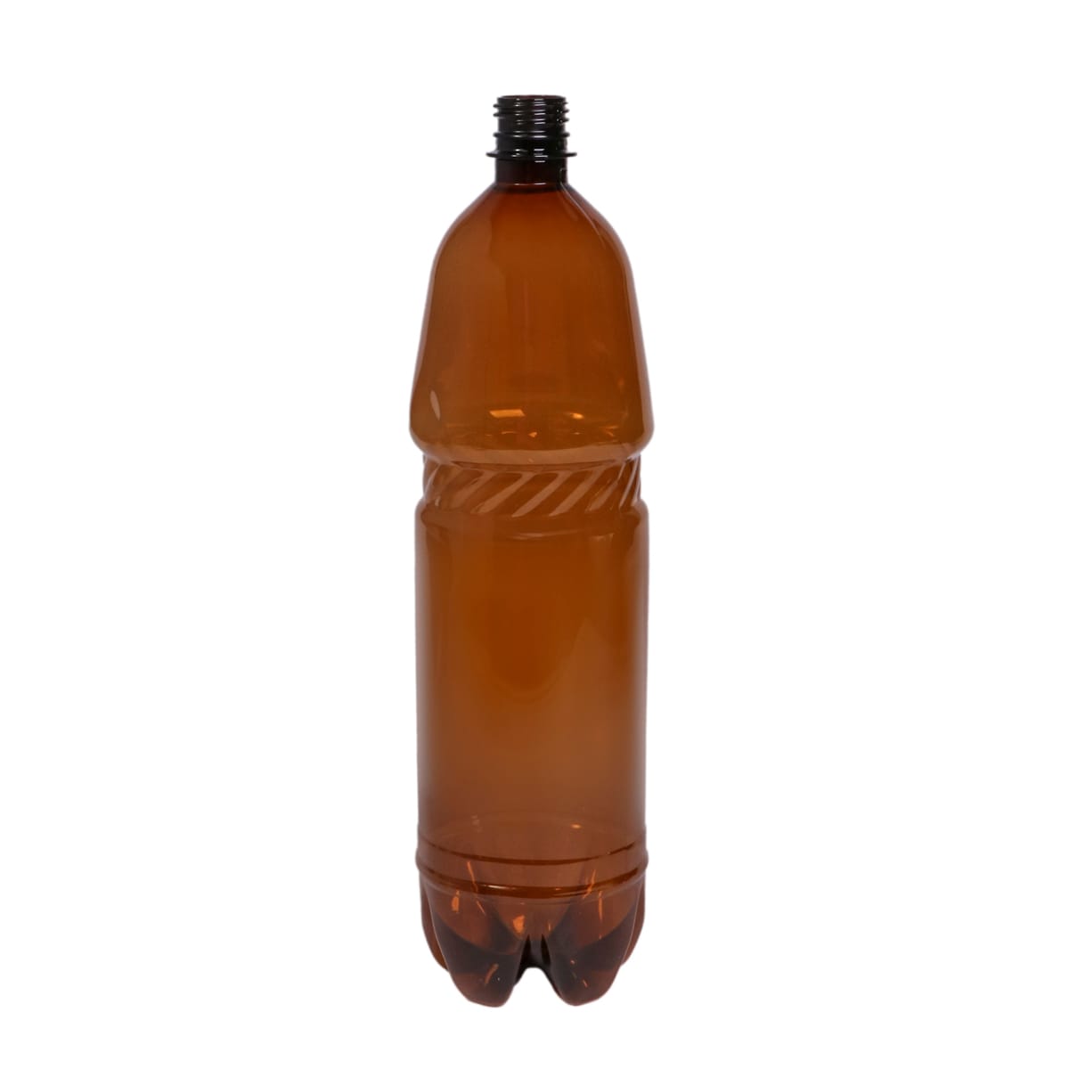 Buteliai PET (30% rPET) 1,5l, kaklelis Ø28 mm, rudos sp., apvalūs, pakuotėje 144 vnt.