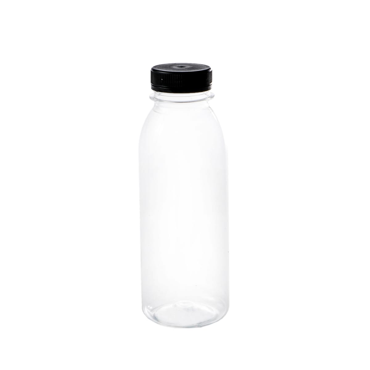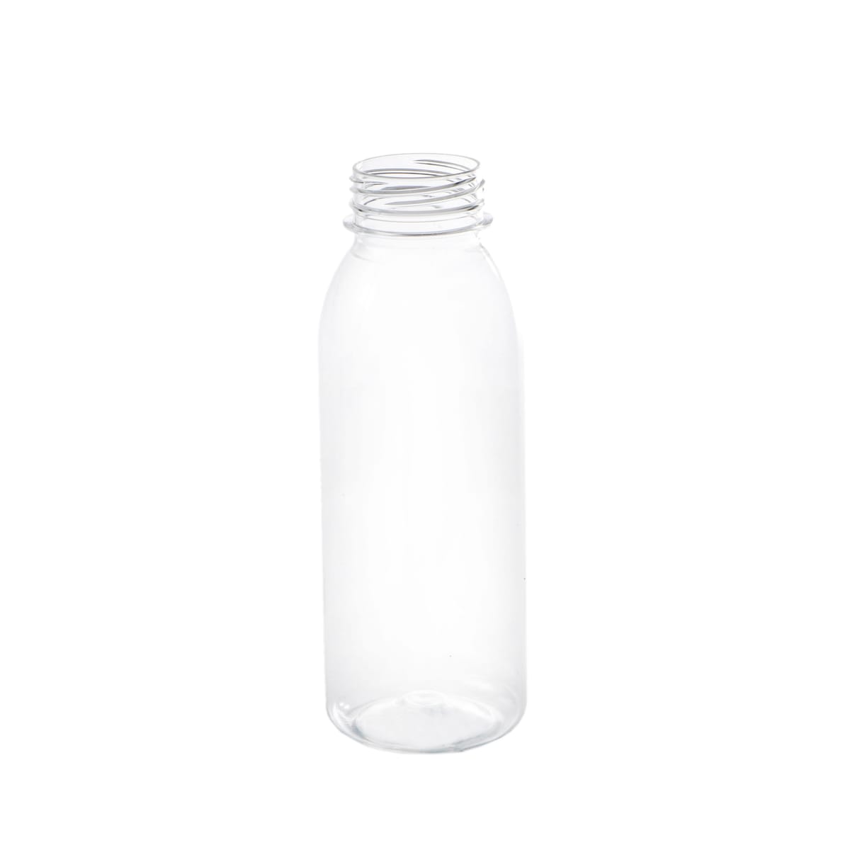 Buteliai PET (30% rPET) 330 ml, kaklelis Ø38mm, skaidrūs, apvalūs, pakuotėje 136 vnt.