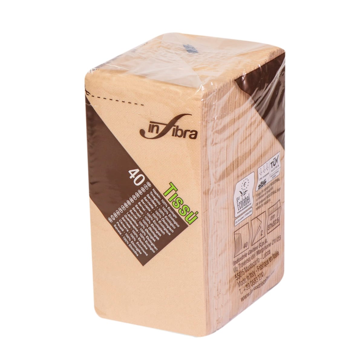 Popierinės servetėlės, 2 sluoksniai, 38x38cm, 1/8, šviesiai rudos sp., pakuotėje 40vnt.