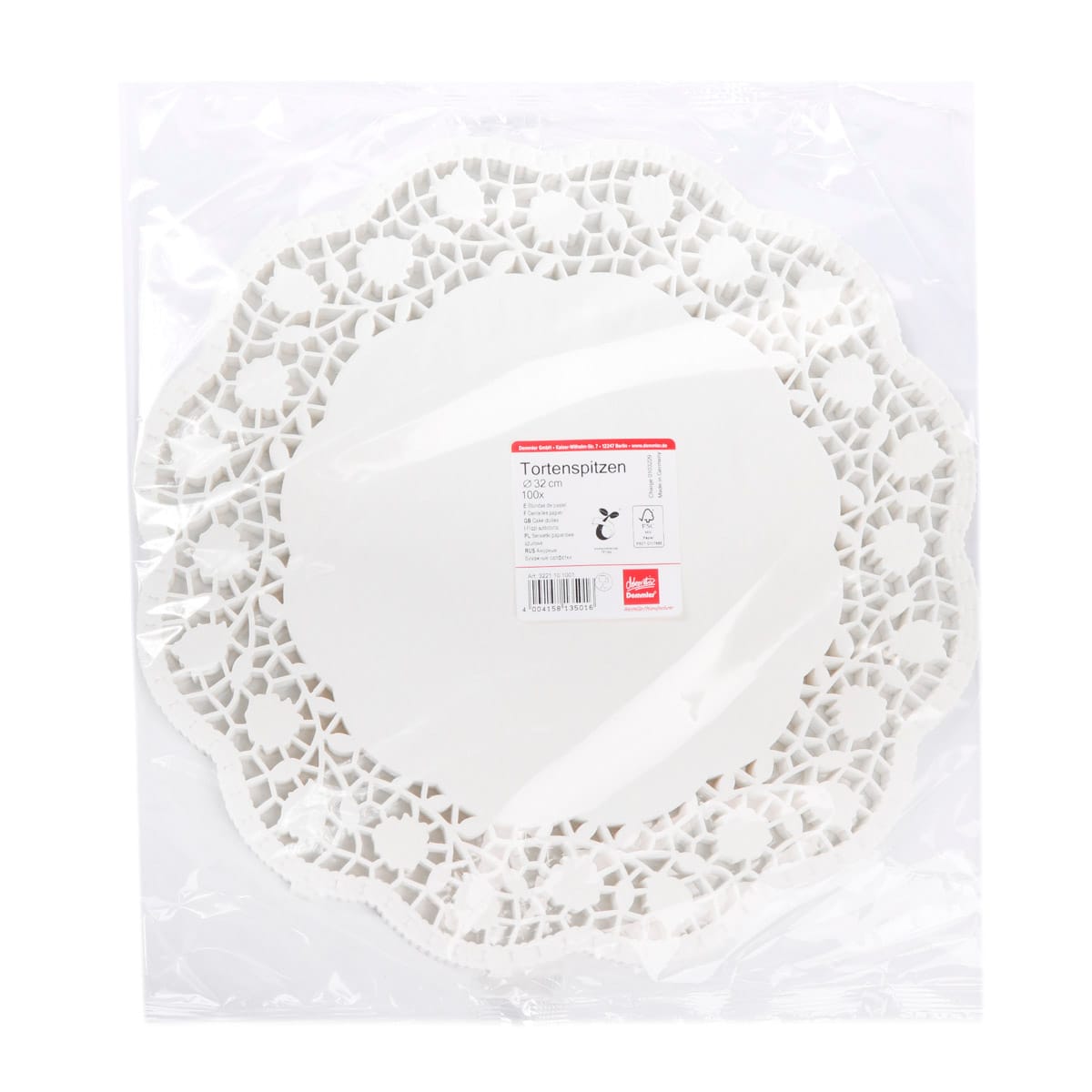 Popierinės servetėlės tortams Ø320 mm, baltos sp., pakuotėje 100 vnt.