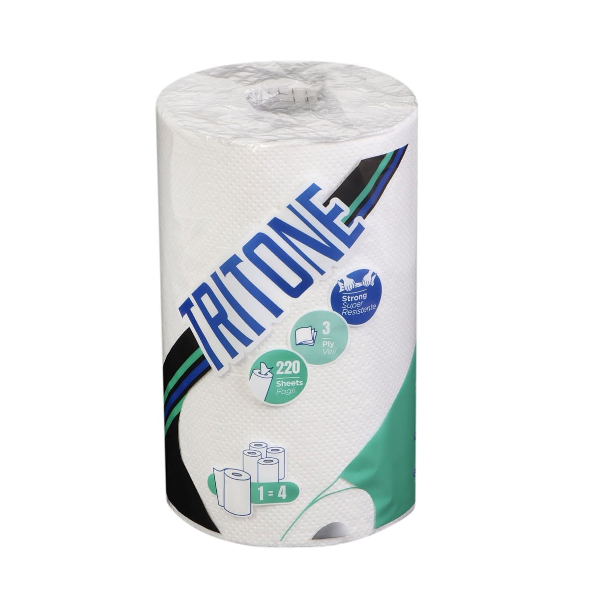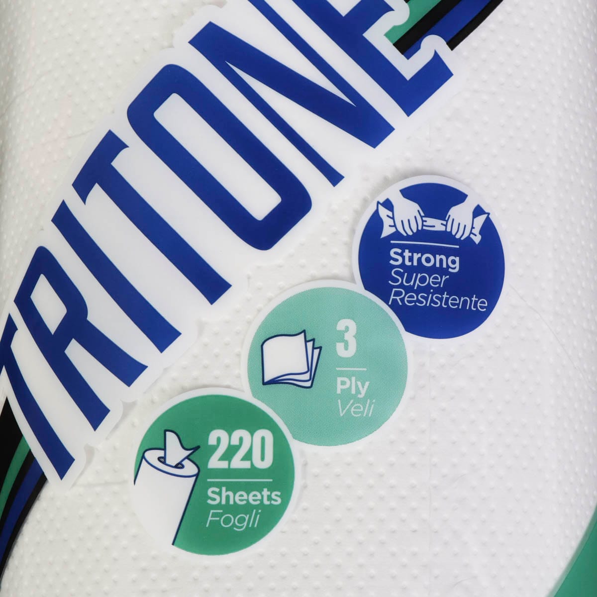 Popieriniai rankšluosčiai Tritone, 3 sluoksniai, 19,5 gsm, h22 cm, 48,4 m, 220 lapų (22 × 22 cm), Ø 14,2 cm/45 mm
