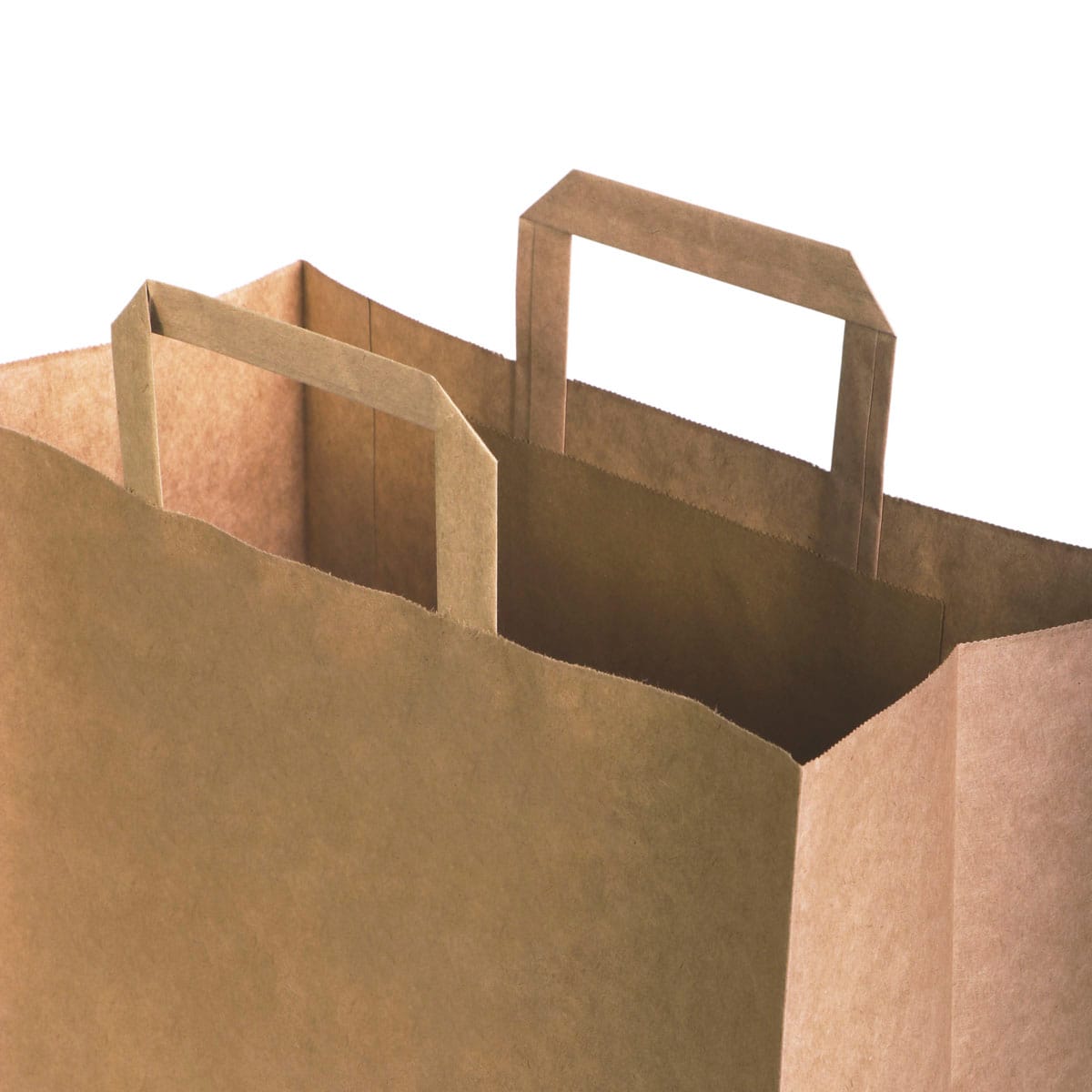 Popieriniai maišeliai su plokščiomis rankenėlėmis, 220x100x240 mm, 70 gsm, rudos sp.