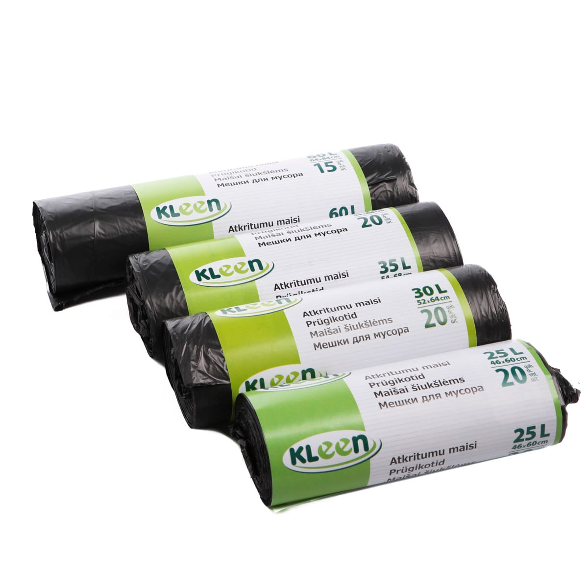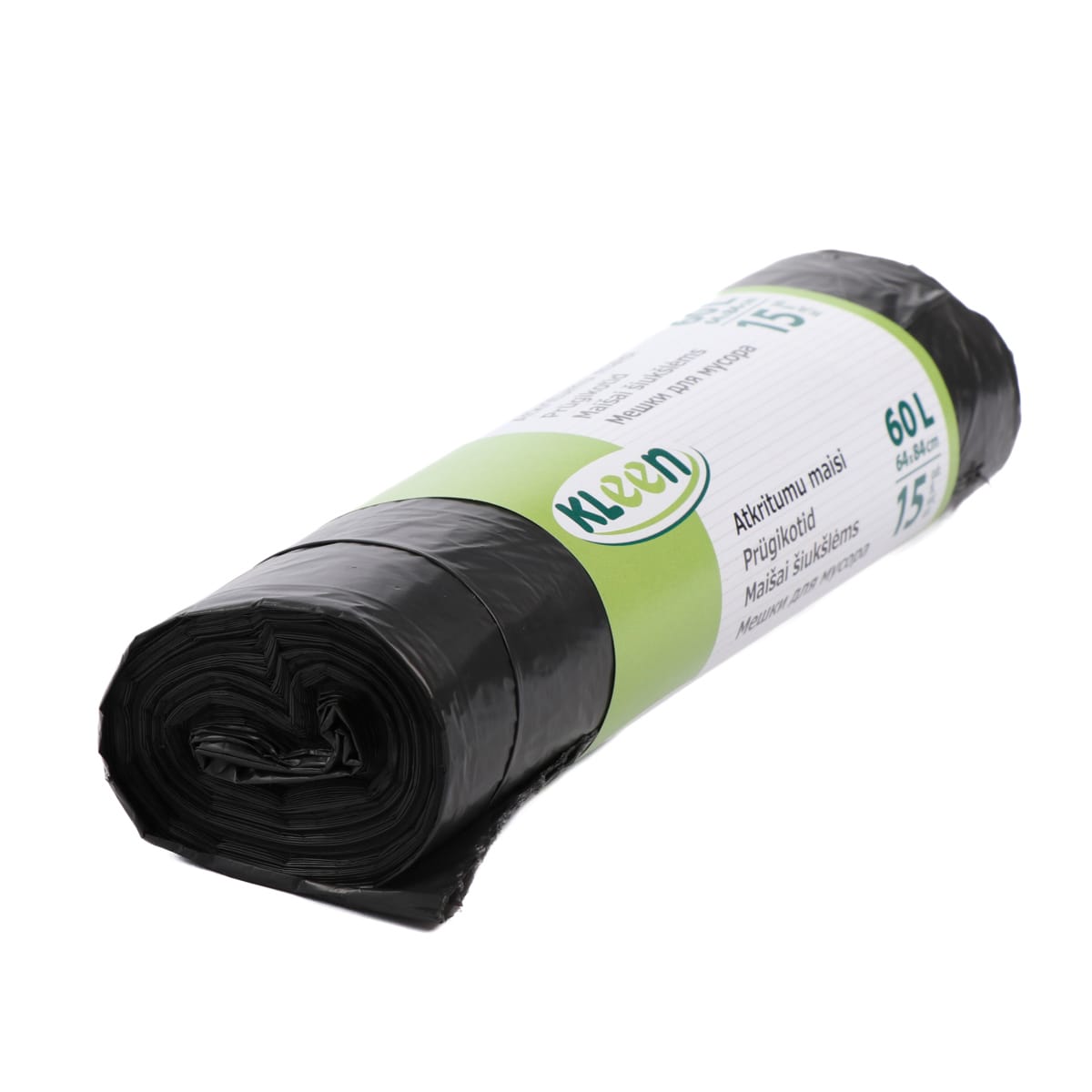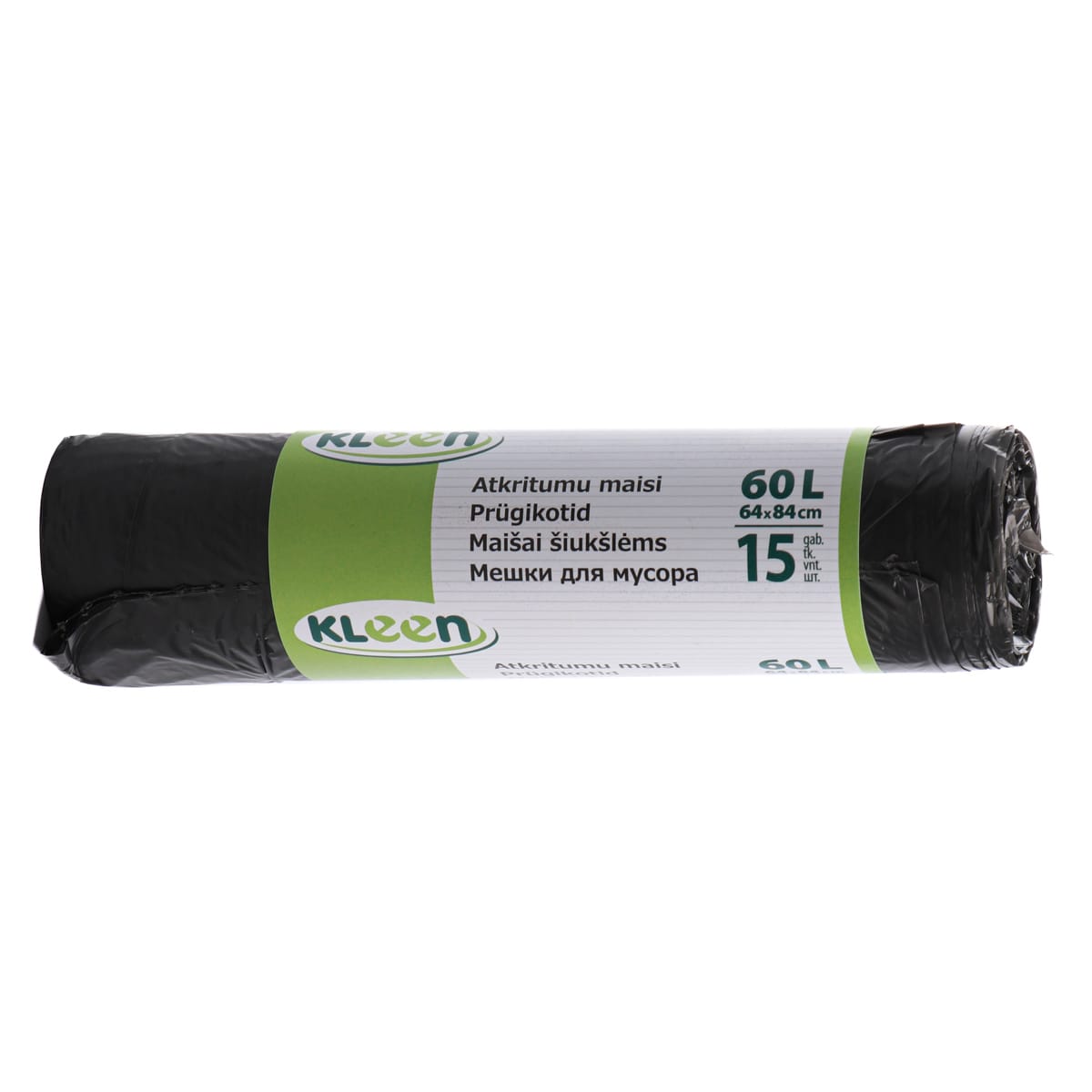 Atkritumu maisi KLEEN, 60L, 64x84cm, 10µm, melni, HDPE, rullī 15gab.