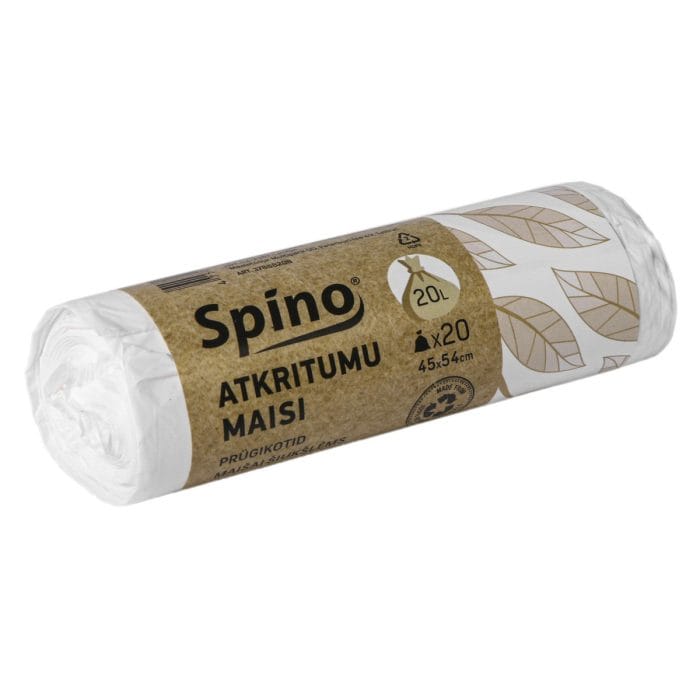 Atkritumu maisi Spino, 20L, 45x54cm, 9µm, balti, HDPE, rullī 20gab.