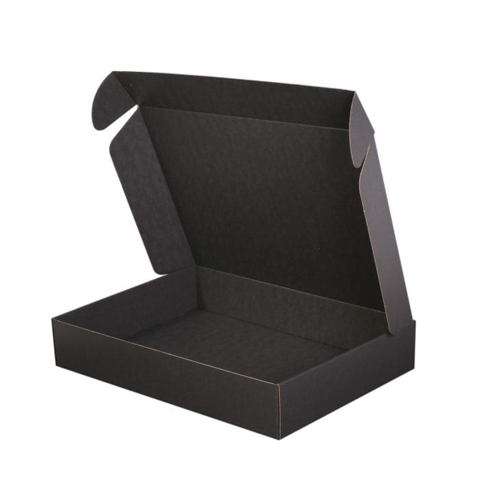 Gofrētā kartona kaste ar atlokāmu vāku, 455x330x81mm, melna, iepakojumā 25gab.