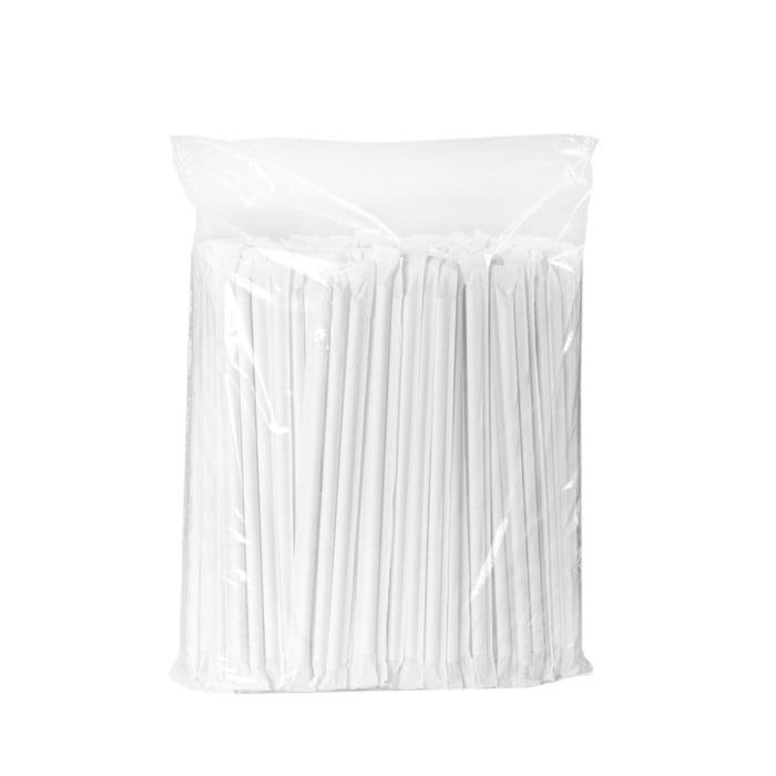 Kokteiļu salmiņi papīra, 220mm, Ø8mm, balti, individuālā iepakojumā, iepakojumā 250gab.
