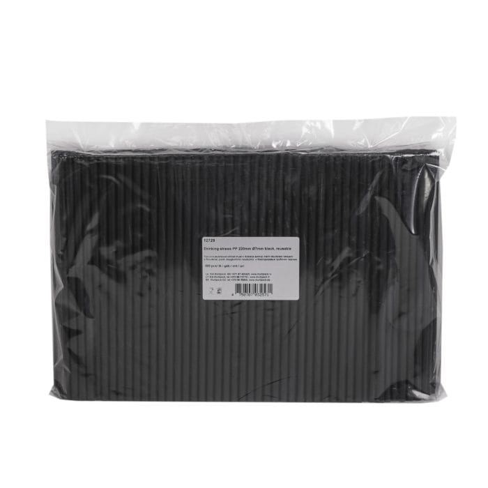 Kokteiļu salmiņi, PP 220mm Ø7mm, melni, daudzreiz lietojami, iepakojumā 500gab.