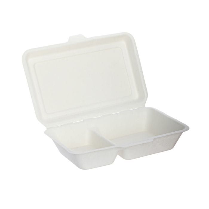 Konteineri divdaļīgi ar atlokāmu vāku BIOBOX, cukurniedru, 260x155x65mm, balti, iepakojumā 50gab.