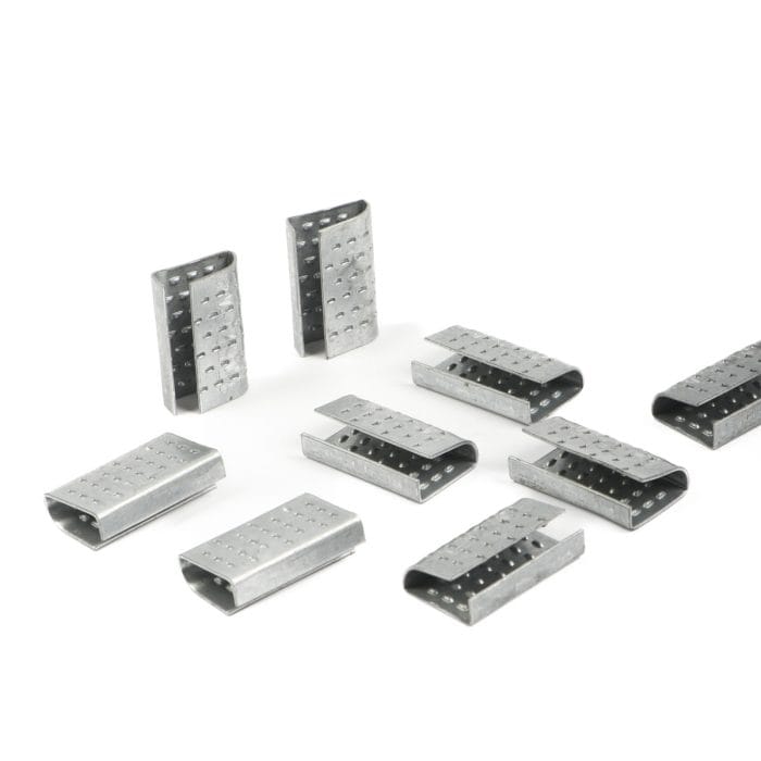 Metāla klipši PET un PP spriegošanas lentēm, 16x30mm, iepakojumā 1000gab.