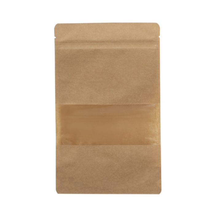 Papīra maisi doypack ar lodziņu, 180+90x290mm, 1000ml, ar zip-lock aizdari, brūni, iepakojumā 100gab.