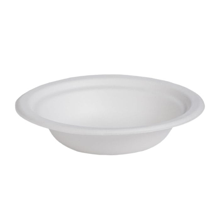 Šķīvji zupai, cukurniedru, 400ml, balti, iepakojumā 50gab.