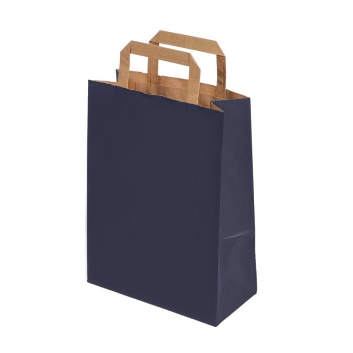 Бумажный пакет с плоскими ручками. Пакет изготовлен из неотбеленной бумаги, снаружи окрашен, но внутри остается коричневым. Коричневые ручки. Идеально подходит для упаковки подарков и покупок.