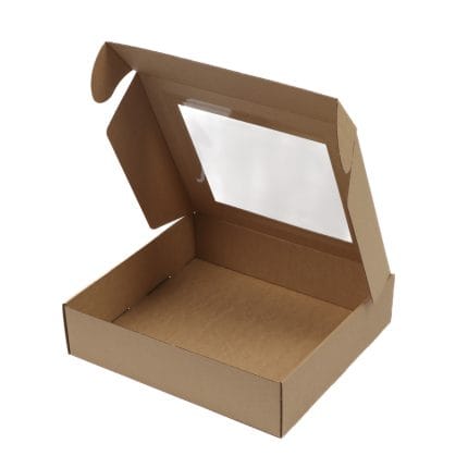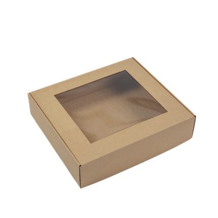 1,23 €/gab. Kartona dāvanu kaste ar lodziņu un atlokāmu vāku, 330x300x80mm, brūna, iepakojumā 10gab.