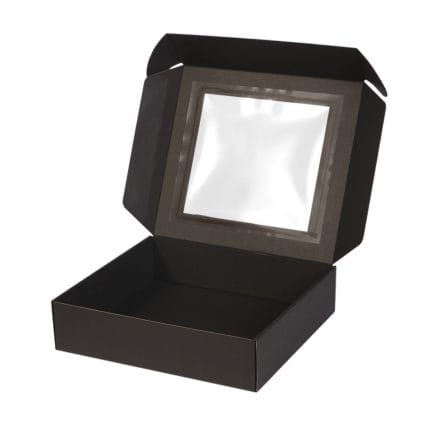 0,70 €/gab. Kartona dāvanu kaste ar lodziņu un atlokāmu vāku, 330x300x80mm, melna, iepakojumā 10gab.