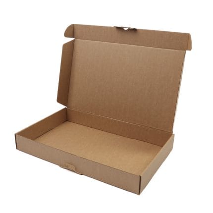 0,91 €/gab. Gofrētā kartona kastes ar atlokāmu vāku, 370x230x45mm, brūna, iepakojumā 25gab.